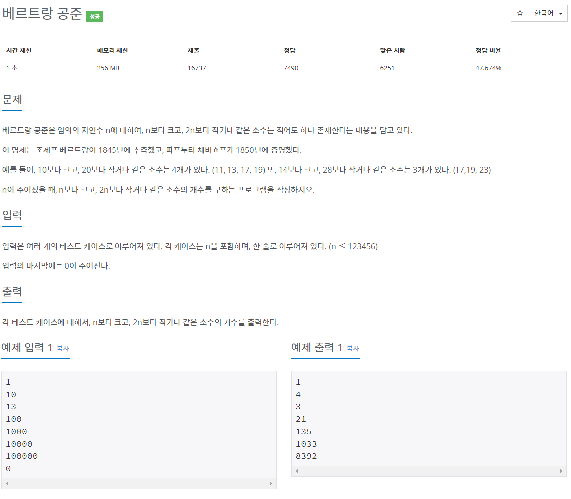 입력값의 두배에 해당하는 범위까지의 소수의 개수를 찾아야한다.